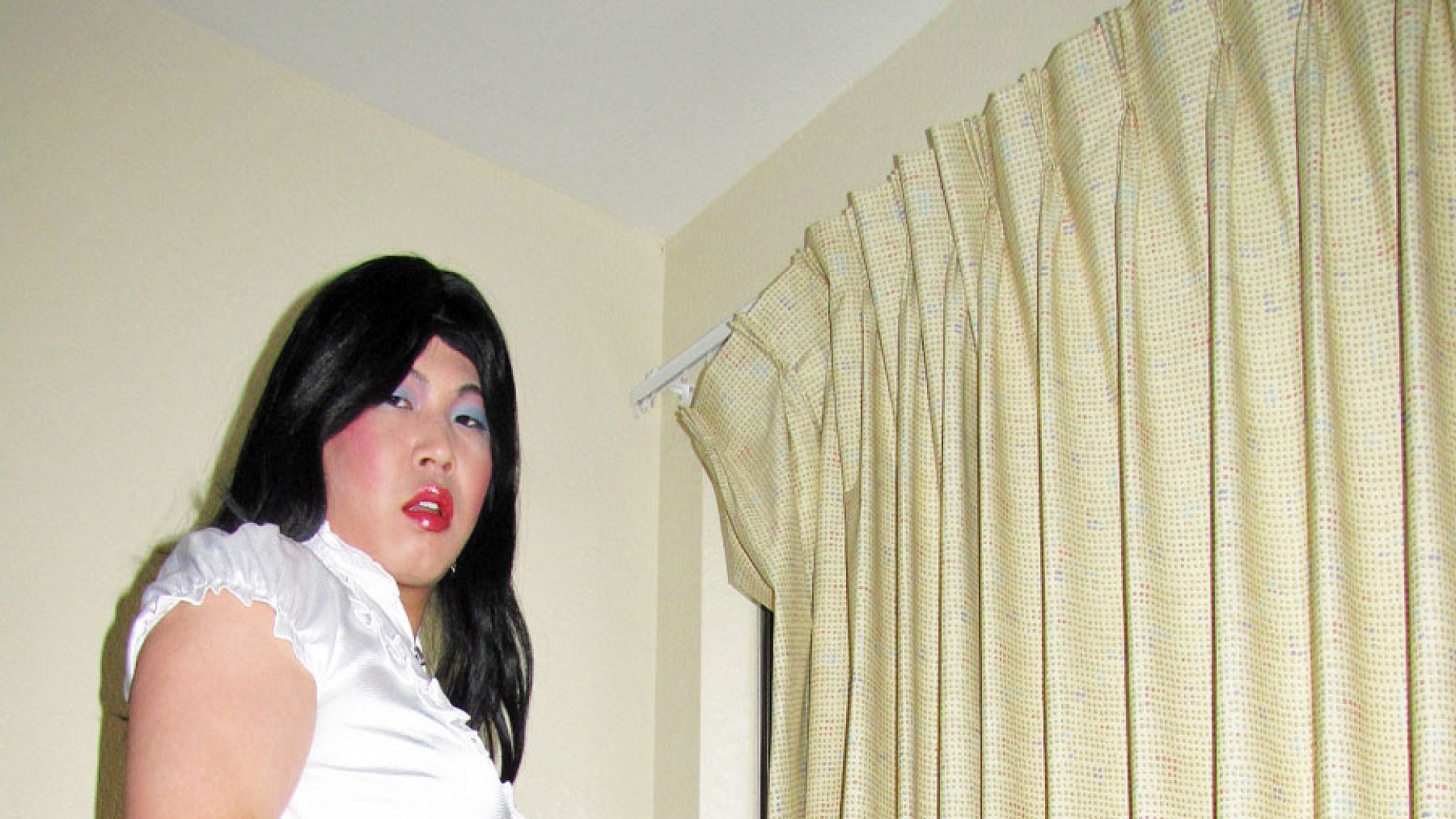 Peaking out of the window in hope some guy will pass by and help me with all this horniness I am feeling in this photo gallery update.