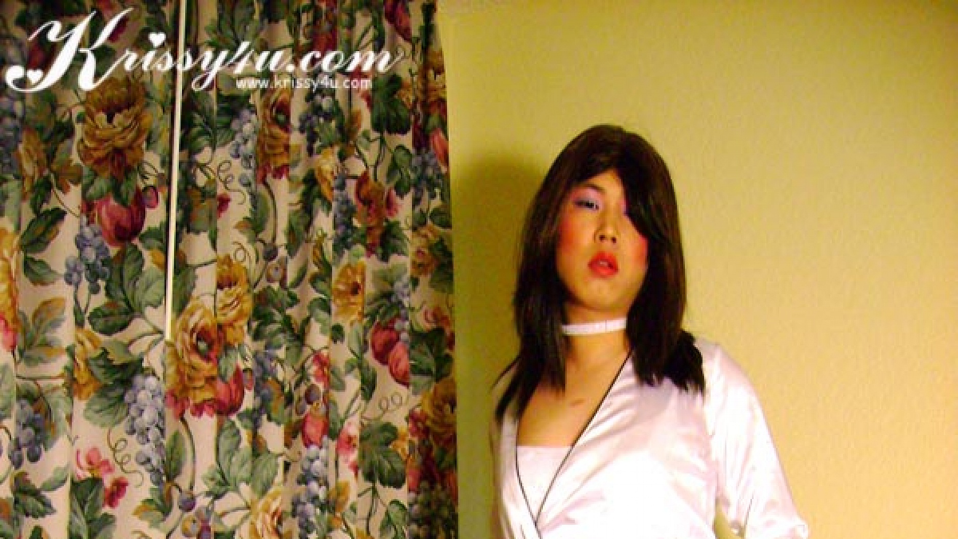 Having some hot slutty fun in my hotel room stroking my hard tgirl cock out from under my white satin robe.